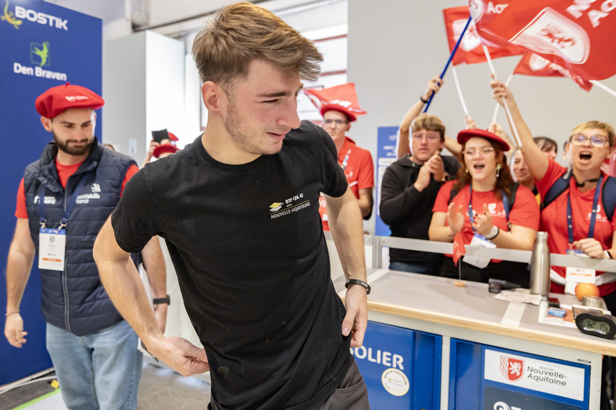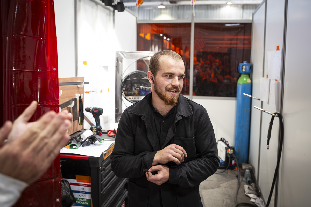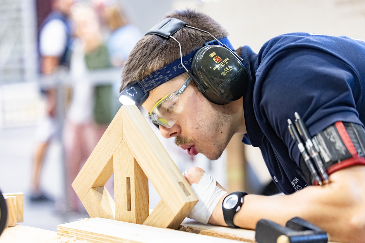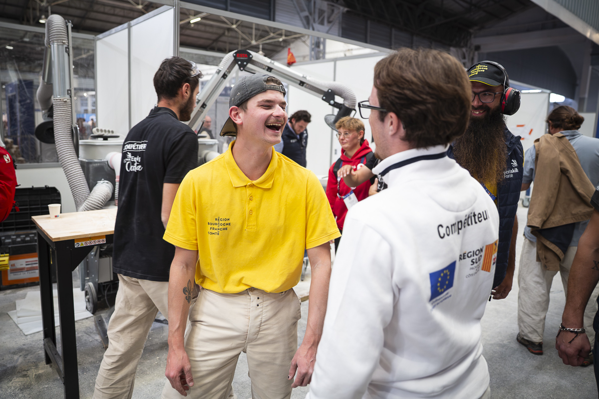 « Humainement et professionnellement, cette compétition est grandiose ! » Aujourd’hui expert métier en menuiserie, Anthony Chatelain a connu les grands frissons des minutes précédant la fin des compétitions. Champion du monde en 2017 à Abu Dhabi, il est aujourd’hui à jamais attaché à la famille des WorldSkills. « Je dois ma médaille d’or à toute une équipe derrière moi, qui m’a fait grandir dans le métier », confie-t-il. L’expert sait à quel point la dernière journée peut être décisive. « Aujourd’hui, pour la réalisation du piétement du miroir de coiffeuse, l’assemblage est technique, avec une courbe, les compétiteurs doivent rester lucides, tout en gérant le temps. » Très représentative de la menuiserie traditionnelle, l’épreuve aura fait appel à la précision des compétiteurs dans leurs gestes métier, mais aussi à leur vision dans l’espace. « Un bon menuisier maîtrise parfaitement la géométrie dans l’espace : l’étape de l’épure, le premier jour, est également primordiale », explique Anthony Chatelain, qui conclut : « quoi qu’il arrive, on sort grandit des WorldSkills ! »
