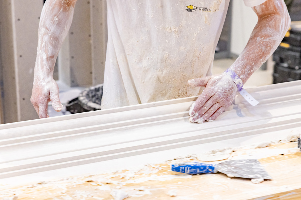 Ici aussi, l’ultime journée est également exigeante. Après un speed module consistant à poser des moulurations et réaliser un enduit teinté, les jeunes ont terminé la compétition en réalisant un sujet libre, de véritables sculptures en plâtre ! « Ils se font plaisir : nous souhaitions faire appel à leur créativité », explique Gildas Moroux, qui se réjouit : « ce groupe de jeunes est génial, à travers eux, nous avons valorisé notre beau métier ! » La compétition WorldSkills est en effet l’occasion de mettre en avant le savoir-faire d’un métier offrant de belles opportunités professionnelles. « Pour attirer et fidéliser, les entreprises de plâtrerie et constructions sèches ont largement travaillé sur les conditions de travail et l’innovation, avec de nouveaux outils comme des lève-plaques ou des exosquelettes », explique Gildas Moroux, qui conclut : « Les salaires sont bons, et nous travaillons sur des chantiers très diversifiés, de la maison au monument historique. En résumé, nous avons le plus beau des métiers ! »